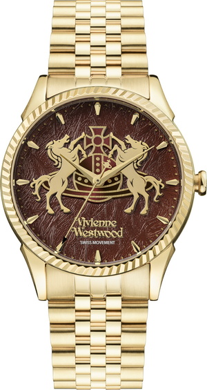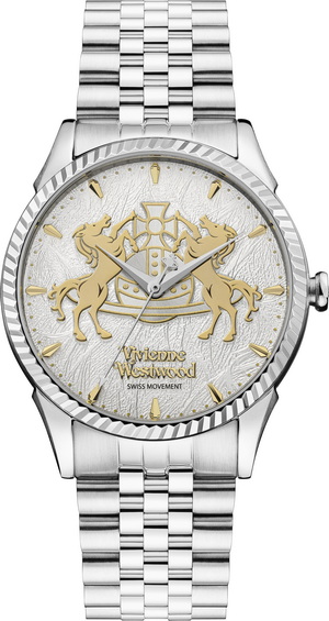 系列还推出一款中性限量版腕表,表盘采用品牌经典的纹理设计,其中“发丝印花”的立体错视效果最早出现在 Vivienne Westwood 金标1991年春夏系列“Cut, Slash & Pull”。本次特别系列中,该印花模拟演绎骏马随风飞扬的鬃毛。腕表配以定制的品牌标识与骐骥纹章,共推出两种款式:银色表壳搭配奶油色表盘,以及金色表壳搭配红色表盘,每枚不锈钢表壳上均刻有独立的限量编号。