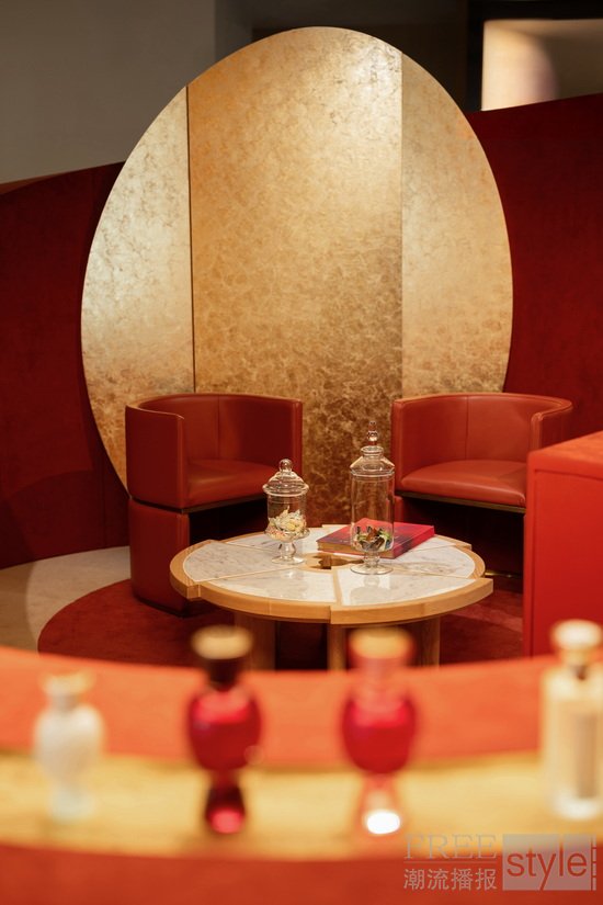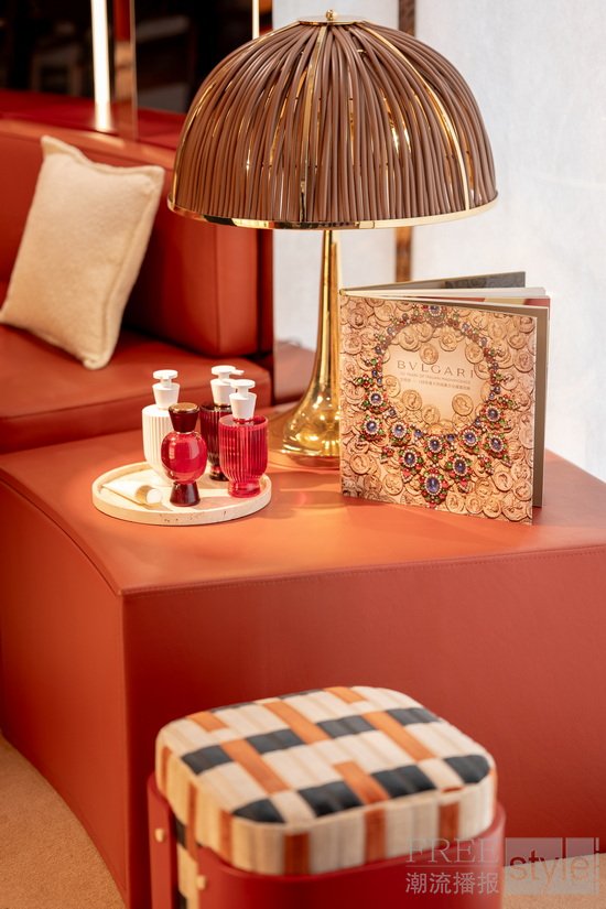 正如所有的宝格丽作品用色彩传递情感、塑造个性印记一样,Salone Olfattivo 香氛概念空间以标志性的温暖自然色调,勾勒出触手可及的奢华质感与惬意氛围。有金色装点的地方,便有馥郁香气陪伴,空间内的香氛作品与金色细节彼此辉映,欢庆珠宝与香氛之间密不可分的灵感联结。