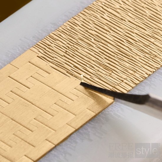 宫廷式图腾装饰诞生于1961年,并在PIAGET 伯爵1969年推出的“21世纪系列”中大放异彩。其灵感源自于制表过程中的玑刻工艺。这一精湛金工赋予黄金纹理质感,打破了以黄金呈现光滑质感的传统,让黄金不再只是承载宝石的基底,而是升华为兼具表现力与艺术感的视觉焦点。宫廷式图腾装饰线条流畅自然,必须纯手工雕刻完成,唯有技艺卓绝的金工大师方可胜任。他们用雕刻针的锋利刀尖,在黄金表面娴熟刻画,每一道纹路与每一条凹槽,皆倾注着专注与匠心。每雕刻一道纹路,匠人们便轻轻拂去表面的金屑,整个过程行云流水,宛若一场以金为媒的专注修行。每一件宫廷式图腾装饰作品皆风格独具,无可复制。金工大师们各怀绝艺:下刀力度的轻重缓急、雕刻角度的俯仰倾斜、运刀速度的疾徐有致,乃至手势的独特节奏,这些细微差异,均赋予了每件作品独特的灵魂,也印证了PIAGET伯爵对匠人的尊重,以及对纯手工价值的坚守。