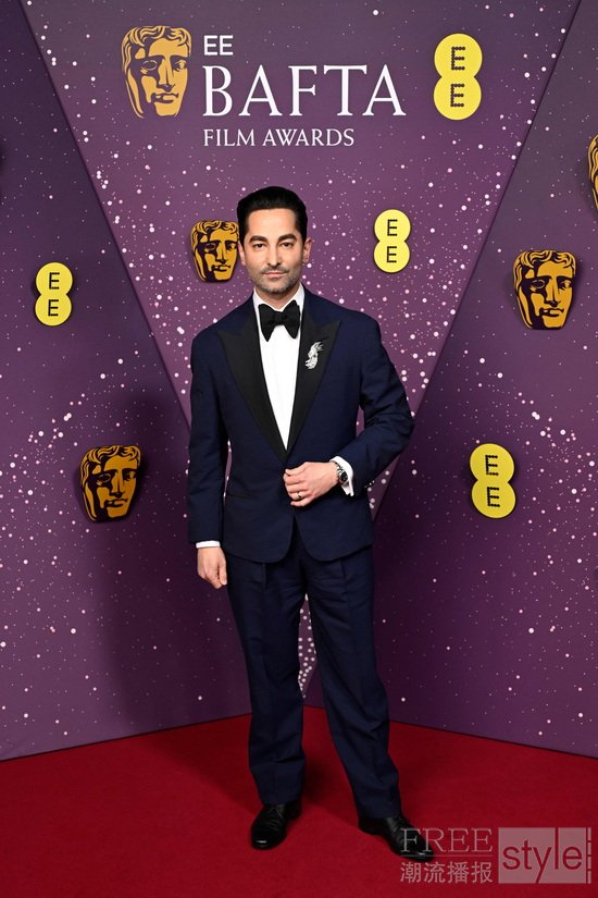 美国制片人Sev Ohanian(塞夫·奥哈尼安)身着dunhill午夜蓝Cavendish单排扣晚装夹克、双褶晚装长裤及白色晚装衬衫,搭配黑色羊毛领结,出席在伦敦举办的2026年EE BAFTA(英国电影电视艺术学院奖)颁奖典礼。