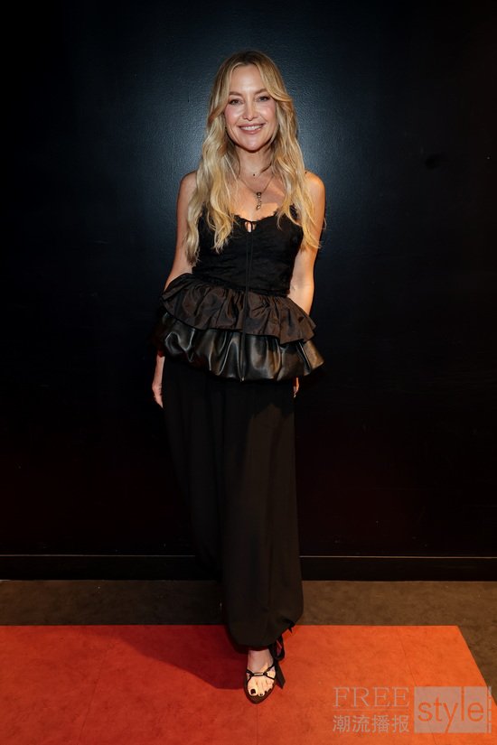 美国女演员Kate Hudson身着黑色蕾丝饰边上衣,搭配垂坠感丝质阔腿裤以及黑色羊皮褶饰腰带,出席在洛杉矶举办的 2026年美国独立精神奖活动。