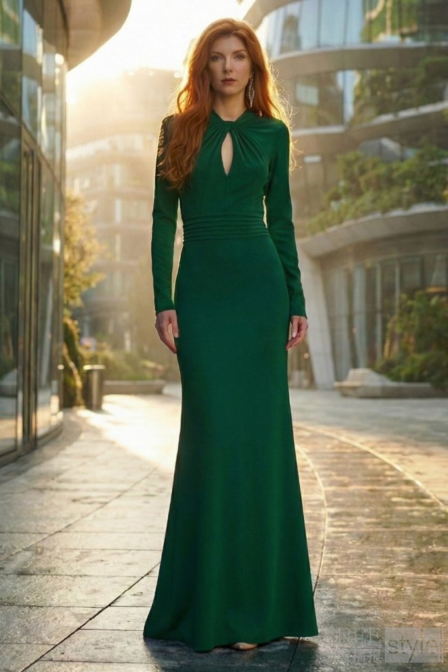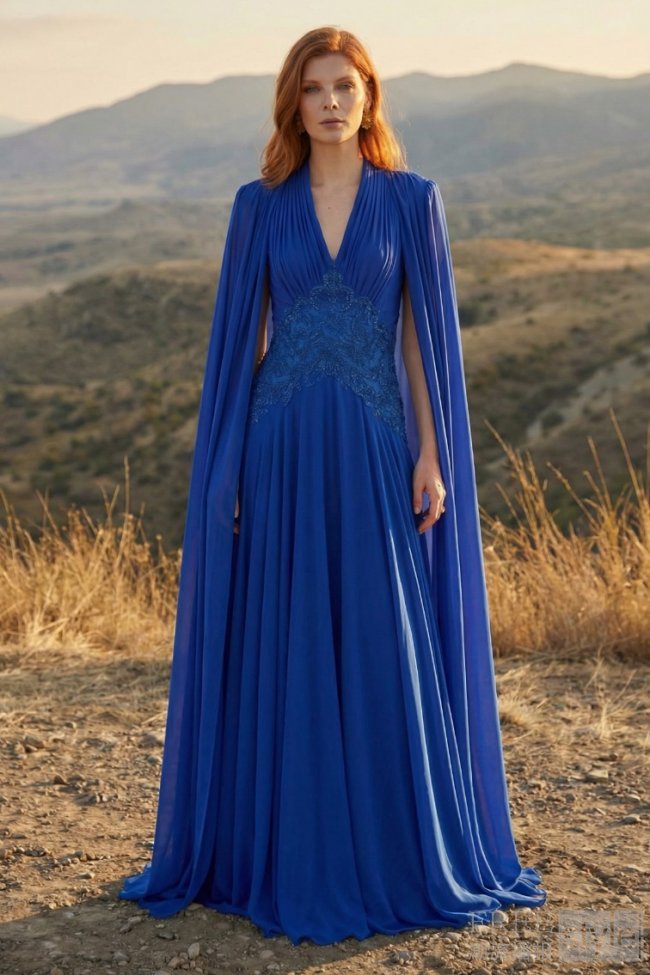 渐变亮片如夜空闪烁,肌理绉纱随身姿起伏,恰似风与大地留下的温柔轮廓。