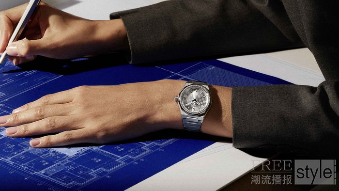 有些梦想,始于一张干净的图纸。DEFY SKYLINE巅峰系列天际腕表36毫米款,以精钢材质勾勒建筑般的几何轮廓,标志性的八边形表壳与刻面线条利落分明,仿佛她笔下正在生长的摩天楼缩影。银色表盘镌刻标志性四芒星图案,是对ZENITH真力时经典“双Z”标志的现代演绎。镶钻款于表圈镶嵌52颗明亮式切割钻石,为理性轮廓注入柔和光芒。两款腕表均搭载Elite 670型自动上链机芯,透明表背下,镂空星形摆陀见证她每一次灵感迸发的瞬间。