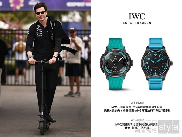 赛道外,梅赛德斯-AMG马石油F1™车队领队兼首席执行官托托·沃尔夫 (Toto Wolff) 同样激情昂扬,他同时佩戴IWC万国表大型飞行员减震装置XPL腕表 “托托·沃尔夫 x 梅赛德斯-AMG马石油F1™车队”特别版 (型号IW356201)和IWC万国表飞行员系列自动腕表41“乔治·拉塞尔”特别版(型号:IW328107)。托托·沃尔夫佩戴的腕表正是为这样的竞速时刻所设计,减震装置能够抵御F1™竞赛中产生的巨大张力。