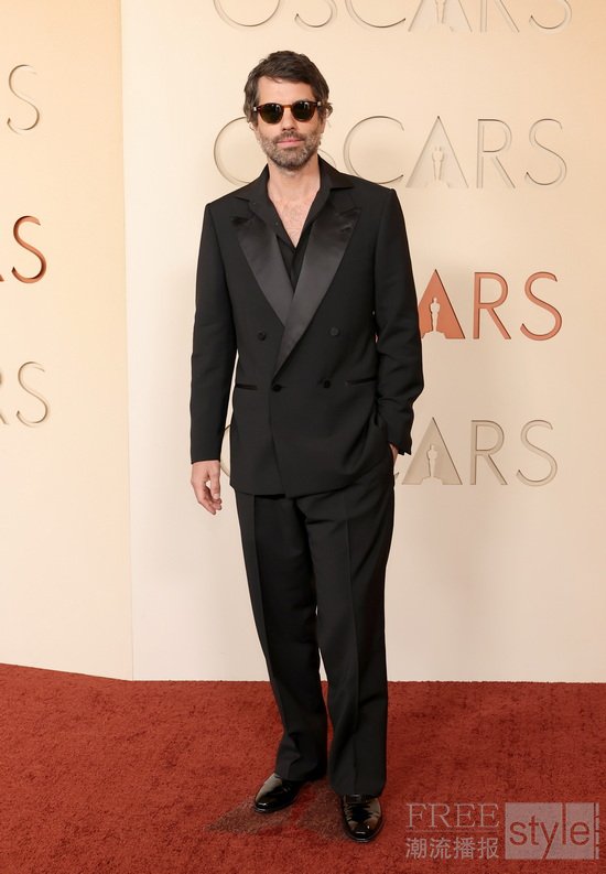 菲利克斯·德·吉夫里(Felix De Givry)身着杰尼亚黑色枪驳领礼服套装、白色棉质衬衫、黑色领结、及黑色皮革Vienna晚装鞋亮相第九十八届奥斯卡金像奖红毯。