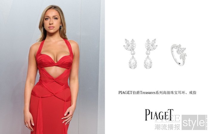 爱尔兰女演员凯瑞·康顿(Kerry Condon) 亦佩戴PIAGET伯爵Limelight Gala系列腕表与PIAGET伯爵Treasures系列高级珠宝耳环现身红毯时刻,于光影之间绽放优雅气质。