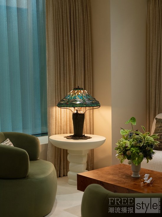 除古董珠宝外,蒂芙尼三里屯太古里旗舰店亦呈现多件由品牌创始人之子路易斯·康福特·蒂芙尼(Louis Comfort Tiffany)创作的古董台灯。绚丽斑斓的彩色玻璃与精巧工艺交相辉映,既展现出品牌对自然之美的恒久探索,也与珠宝作品共同构筑出一幅充满艺术气息的瑰丽图景。