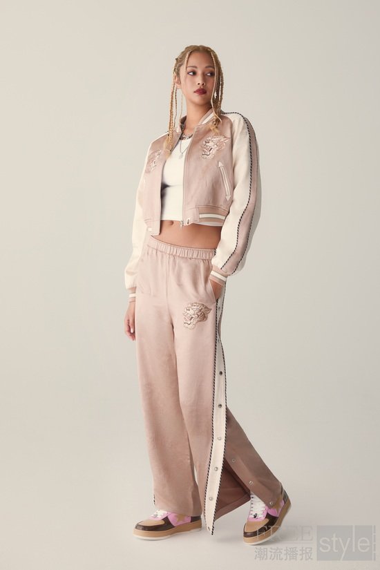 女士系列以自信而精致的姿态,将传统底蕴带入当代语境。横须贺夹克作为核心单品,通过当代剪裁的革新,在结构感与舒适度之间实现精妙平衡。搭载箔印工艺的靛蓝色连帽衫,在复古空间中捕捉光影,为日常廓形增添精致光泽。这是一种极具态度的工艺美学,柔美与力量交织,历史在自由中被重写。每件作品既富有表现力又极具实穿性,透过女性视角呼应了黄金时代那份无畏的创造力。