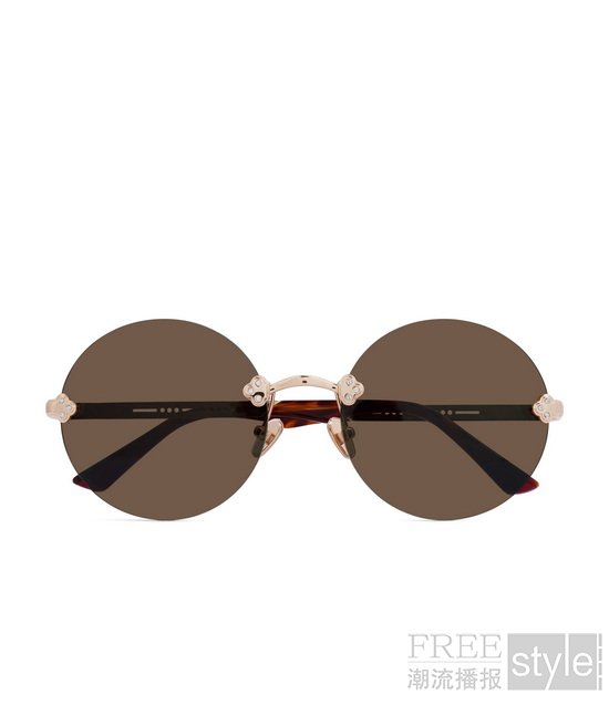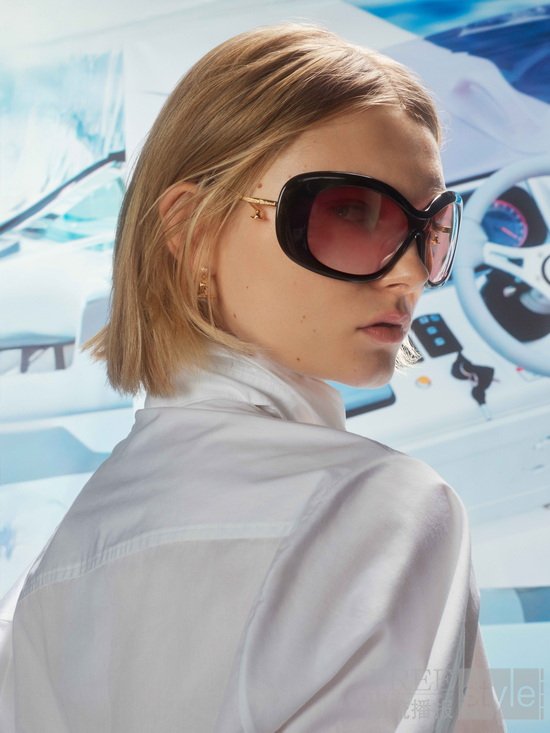 太阳眼镜系列的金属细节设计纤巧精致,灵感源于珍藏宝物与古董装饰元素。Franklin以极简金属框架衔接椭圆形镜片,可选金色、复古金色和银色;Vera的镜片轮廓更为棱角分明,呈现出偏运动感的力量风格。