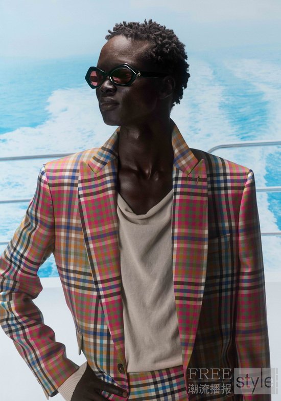 此次系列亦对部分Vivienne Westwood 经典太阳眼镜款式进行了焕新呈现。Athalia蝶形镜框搭配黑色蛛网纹理与雾紫色镜片;Vivienne以苏格兰格纹图案重新诠释;Costello则选用透明醋酸板材加以演绎。