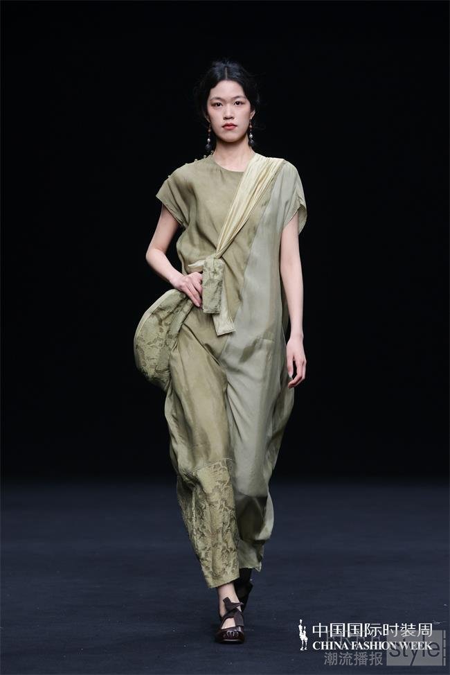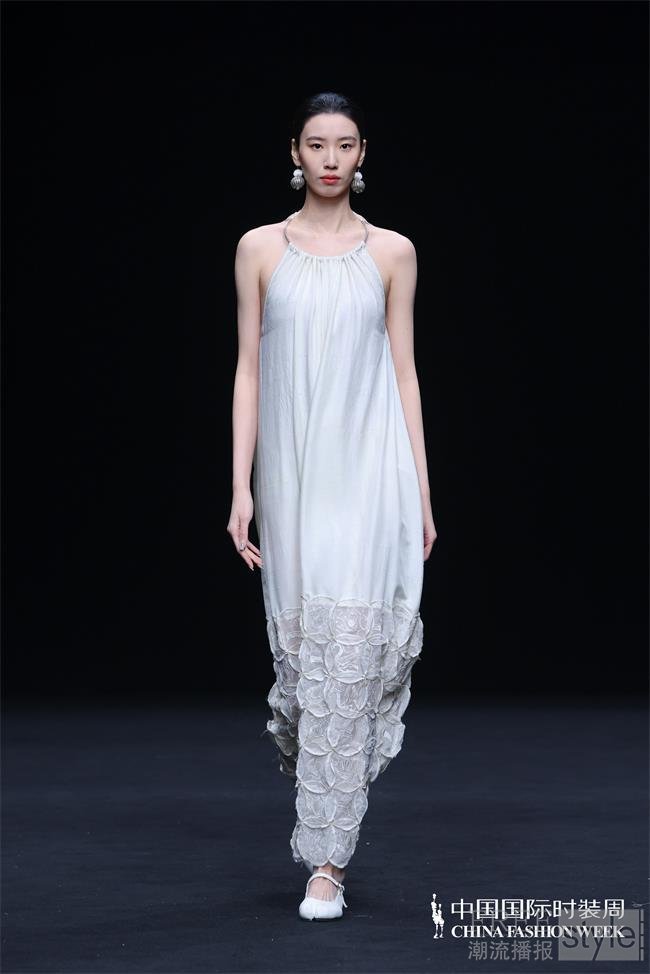 在设计呈现上,壹亍A.1以流动剪裁与松弛廓形为核心设计手法,摒弃过度修饰,消解穿着的束缚感,让服装线条随身体自然舒展。细节之处尽显匠心,手工缝制、植物染色等精工技艺的运用,进一步提升服装的质感与穿着体验,于简约中彰显高级格调。在面料选择方面,品牌秉持天然、透气、亲肤的原则,精选真丝、棉麻等天然材质,兼顾触感与体感的双重舒适,构建可持续的本真美学。秀场之上,模特以从容步态演绎系列造型,轻盈流动的衣影与现场空间氛围相得益彰,收获了现场观众的高度认可。