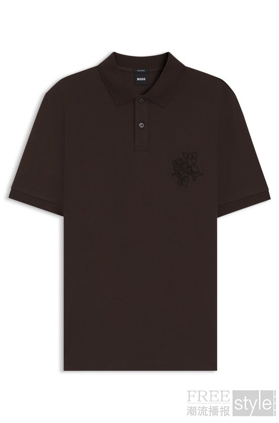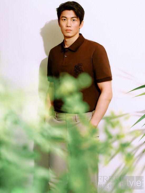 在静谧的图书馆场景中,他身着 BOSS臻品系列卡其色 Polo,采用无Logo极简设计,以顶级 SUPIMA® 匹马棉织就,经丝光处理后,触感柔滑如羊绒,垂坠挺括。搭配2026春夏同色系BOSS Performance机能通勤系列“科技亚麻”西装,共同构筑全天候商务造型的优雅新解。而在旷野林间,另一款设计以经典Double B标识为蓝本,左胸特别饰以中国市场限定的三角梅镂空刺绣,灵感源于岭南风物,既致敬本土美学,亦彰显独特时尚态度。