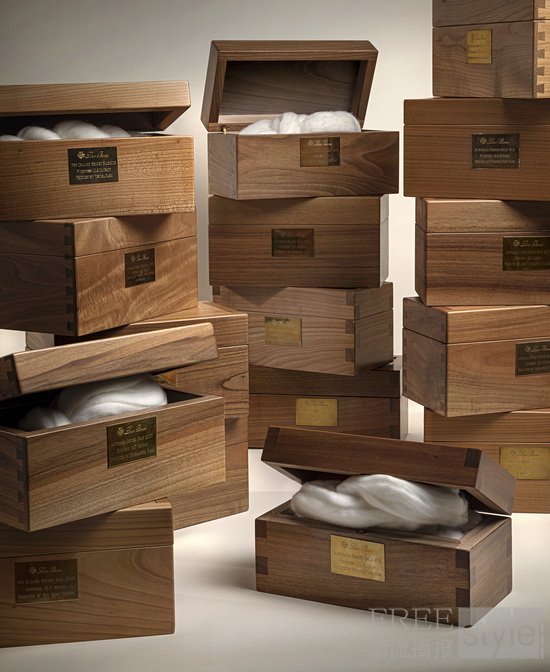 在新的 World Record Bale 诞生之前,目前的羊毛捆纪录保持者会被珍藏在皮埃蒙特夸罗纳工厂 (Quarona)的玻璃容器内。新纪录诞生后,Loro Piana 就会将上届纪录保持者的珍贵羊毛制成别出心裁的艺术杰作,专供眼光独到的尊贵客户收藏。