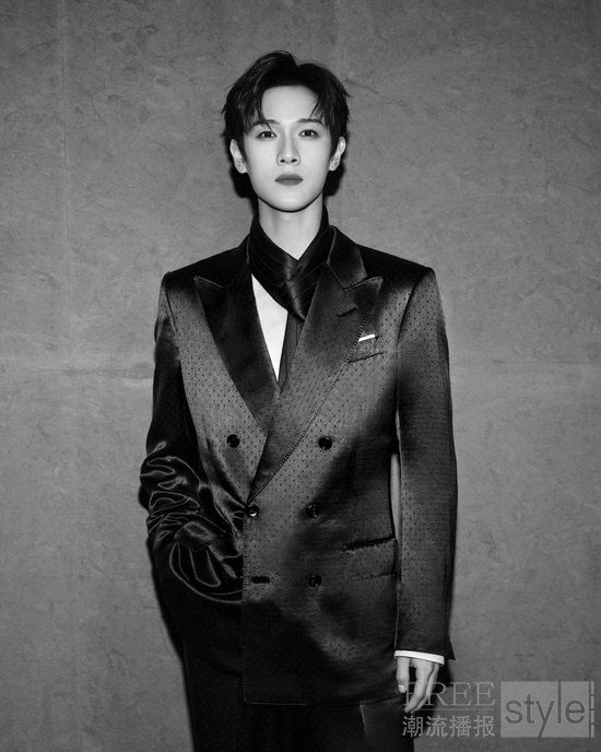 TOM FORD BEAUTY 中国区大使李昀锐身着 TOM FORD 2026 夏季系列深靛蓝色缎面波点提花双排扣西服套装亮相。细腻缎面光泽静谧深邃,波点提花纹理灵动跳跃;同色系丝巾轻绕颈间,暗藏层次巧思。利落剪裁勾勒挺拔身形,于典雅内敛中,尽显俊逸自持的绅士气度。