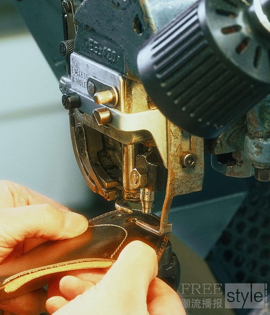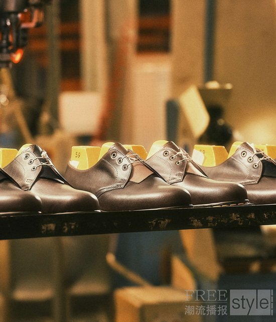鞋款配备古董金色鞋孔,搭配圆形上蜡鞋带,为牛津鞋轮廓增添精致感,同时附有特别版吊牌,致敬英国 Cobbs Lane 工厂。