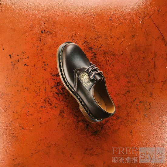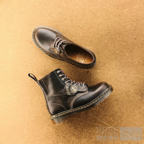 为纪念此鞋款周年,Dr. Martens 英国制造工厂打造了这款限量版本。此纪念鞋款采用来自利兹制革厂 C. F. Stead 的经典小牛皮制成,并融入鲜明的 DM 设计语言。