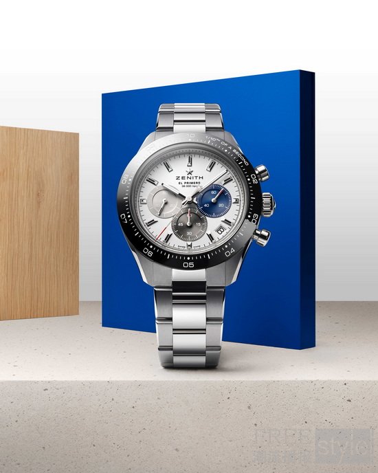 品牌标志性的交叠三色计时盘,以灰色、岩灰色和蓝色再现1969年El Primero星速机芯的经典设计。镶贴式棒状时标与刻面指针涂覆Super-LumiNova C1超级夜光物料,确保清晰读时,延续了CHRONOMASTER旗舰系列腕表一以贯之的实用美学。