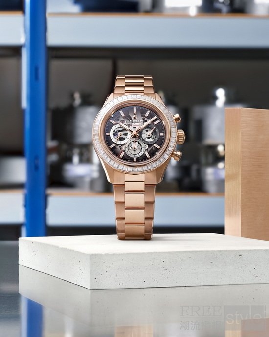 以18K玫瑰金打造的CHRONOMASTER SPORT 旗舰系列运动腕表镂空款,