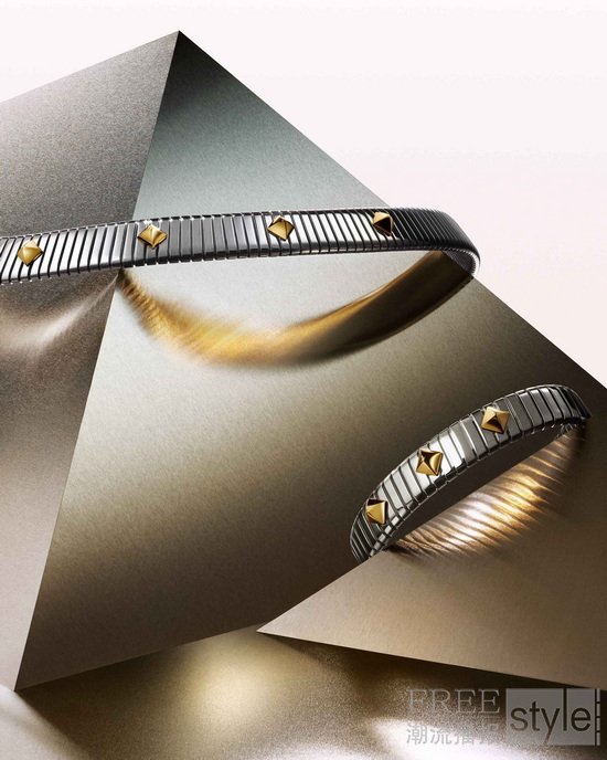 Tubogas系列以锐意创新为核心理念,瞩目推出项链与手镯新作,开启一场前卫美学与珠宝设计的灵感对话。呼应20世纪70年代大胆不羁的设计风格,新作以精钢材质打造出灵动盘绕的经典Tubogas螺旋造型,呈现出浑然一体的视觉效果。18K黄金饰钉点缀其上,为整体设计增添了丰富的层次感与精致的对比美感。18K黄金与精钢精妙交融,赋予造型更为流畅灵动的美感,亦彰显大胆创意与精湛工艺深度融合的设计理念。