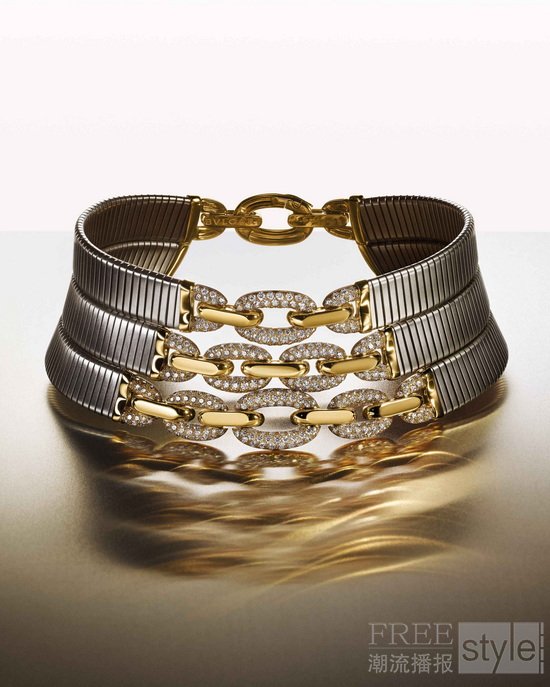 宝格丽亦以三款高级珠宝项链致敬“金与精钢”创作传承,臻呈卓然独特、珍贵的匠心之作。这些珠宝专为礼赞品牌开拓精神悉心打造,凝聚了宝格丽历来勇于突破材质边界的果敢魄力,致敬“无畏创艺”精神,铸就未来新篇章。
