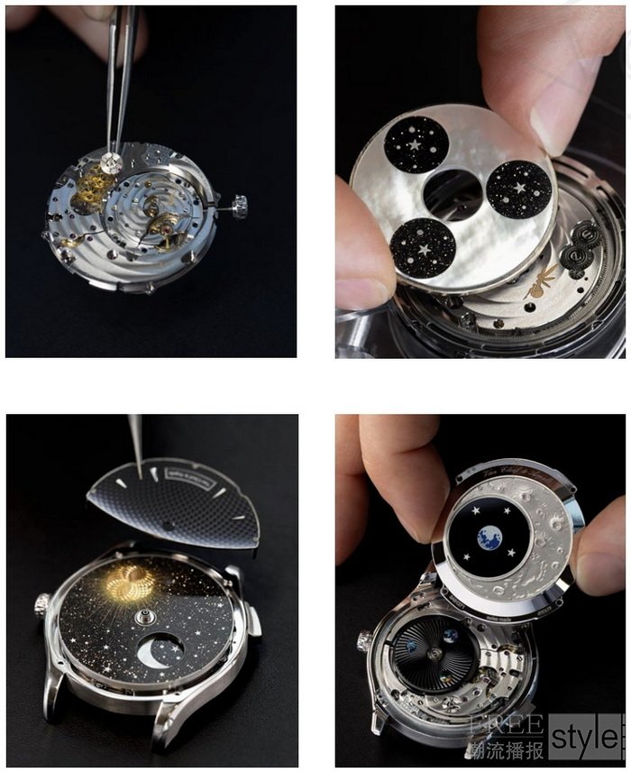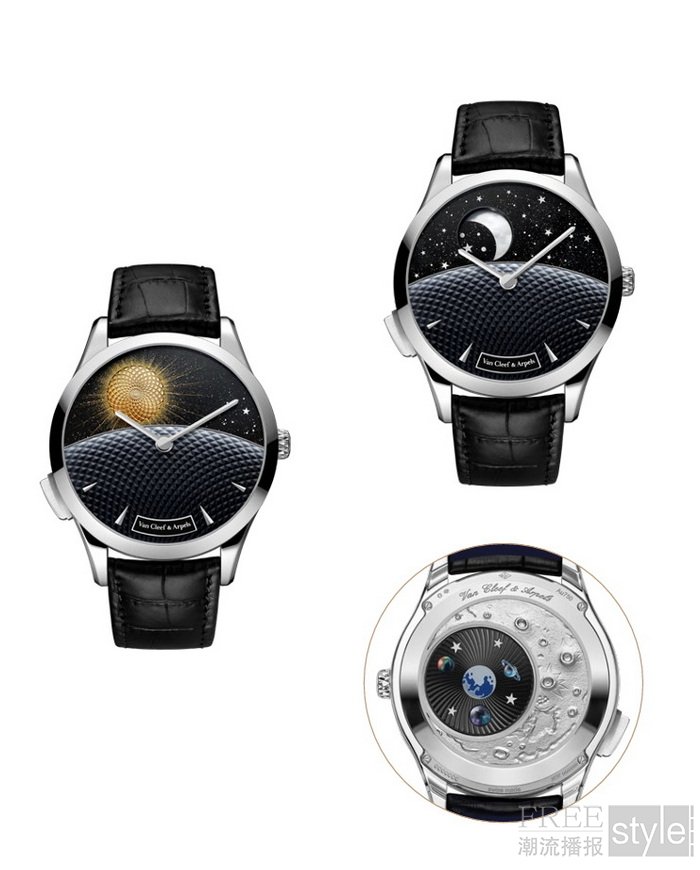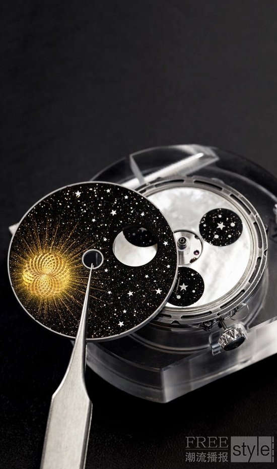 今年,世家以Poetic Complications诗意复杂功能腕表系列新作,细腻捕捉明月盈亏之间的微妙变化。表盘之上,Poetic Astronomy诗意星象在不同时区之间和谐流转,在珐琅艺术勾勒的典雅舞台上踏出回旋舞步。与此同时,Van Cleef & Arpels梵克雅宝细诉时光流转的珠宝,则通过珍稀材质诠释星海无垠的意象。最后,Extraordinary Dials非凡表盘腕表系列亦迎来两枚新作,在浩瀚星河下低诉传奇恋曲。