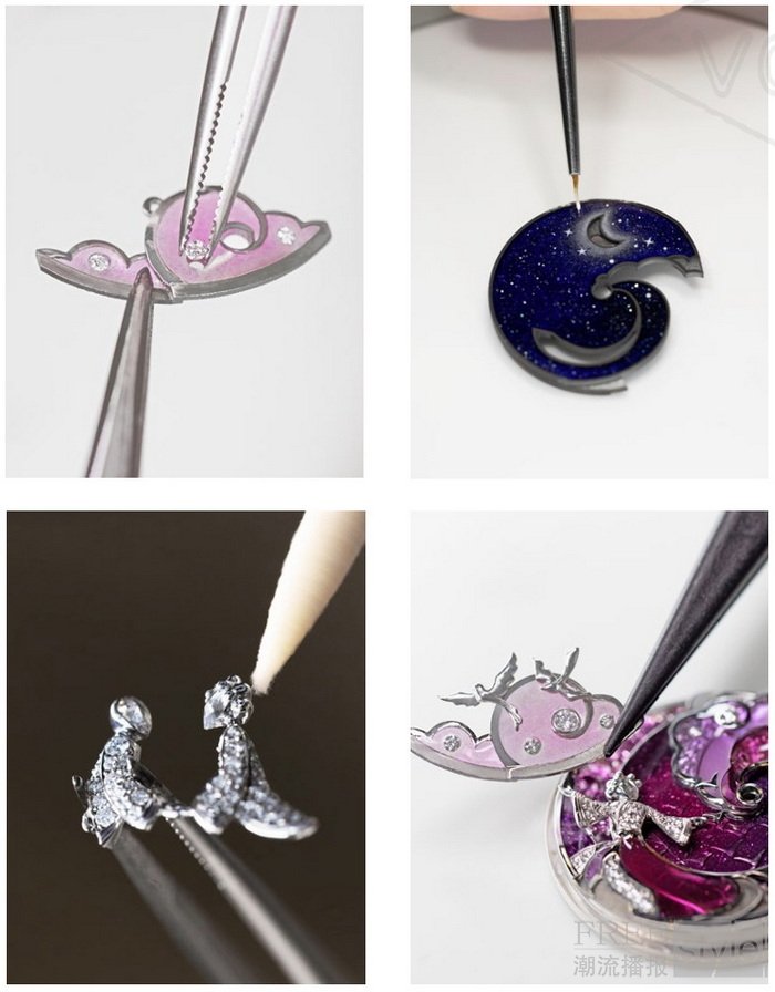 Lady Retrouvailles Célestes腕表上云朵图案的珐琅镶嵌工序