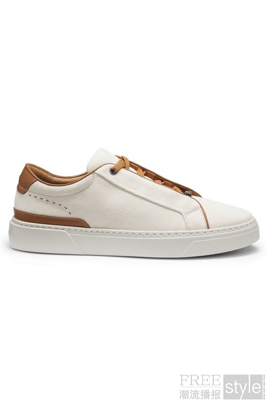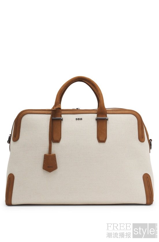 精心臻选的BOSS配饰系列,与BOSS | LIGNE ROSET Togo的匠心美学相得益彰。双色提花靠垫套与采用马鞍针法缝制的毛毯,巧妙呼应了座椅对材质层次的精妙演绎。此外,2026春夏系列中的Madison手袋与Gary运动鞋等单品亦经特别甄选纳入此次搭配叙事—复刻Togo座椅皮革与织物的双材质拼接设计,尽显BOSS剪裁精髓。浅米色棉麻帆布Gary运动鞋,缀以皮革饰边,与同色系Togo沙发的雅致美学一脉相承;纹理帆布大容量旅行袋搭配皮革饰件、可拆卸肩带与钥匙扣,压印logo标识点缀其间,此番组合不仅为步履不停的当代生活注入精致格调,更将BOSS的剪裁美学边界,从衣橱从容延伸至室内设计领域。