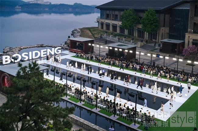 大秀选址雁栖湖畔,湖面波光、远山肌理、落日余晖与舞台背景浑然天成,将波司登本季产品“都市与户外无界切换”的理念化为沉浸式的感官体验。