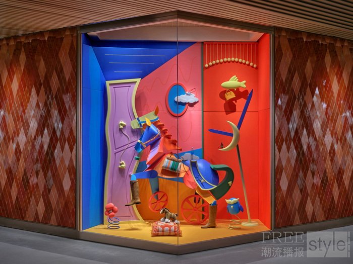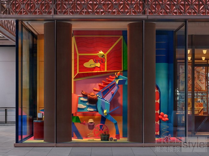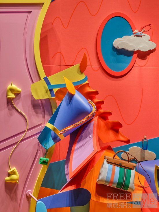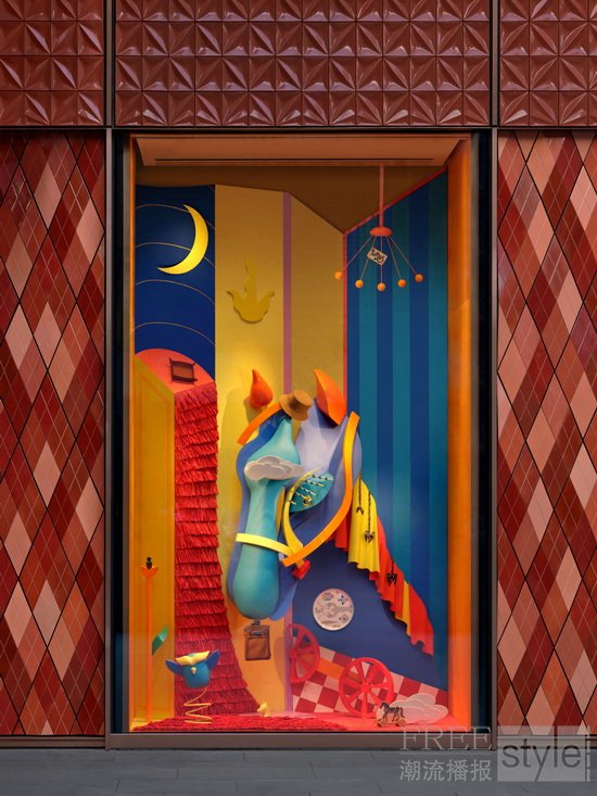 现实与幻梦,恐惧与希望,一路交织,小马的面庞与身体不断处于动态重构之中,追随着它对于世界整体样貌的感知;又或许,世界正在它的体内显现,自由而完整。整体橱窗装置巧妙融入各类爱马仕物件,营造出多个奇幻维度的空间,将日常生活引入一种梦境般、富有诗意的视觉领域。在这些被反转与重塑的空间中,小马与世界展开了一场持续的“捉迷藏”游戏,勇敢地探索未知;而这一过程,正是其成长阶段中一段不断发现自我、生成自我的动态旅程。