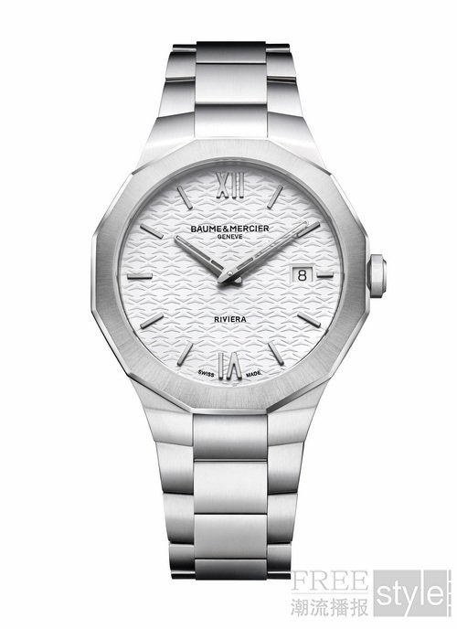 名士利维拉73系列日历石英腕表M0A10844、M0A10845和M0A10846 ,表壳直径39毫米,搭载石英机芯,表壳厚度为7.7毫米,突显了和谐的比例与优雅的轮廓。十二边形表壳摈弃可见螺丝设计,表盘的大开口设计勾勒了轮廓的优雅美感。表壳背面均镌刻“73”标识,搭配灵感源自船甲板的垂直条纹,辅以1970年复古字体,蕴含低调内敛巧思,与该系列的初始设计风格相呼应。