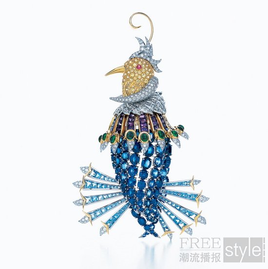 从1956年至20世纪80年代末,让·史隆伯杰在蒂芙尼度过了三十余载的职业生涯。期间,他重新诠释自然万物,创作出一系列趣味盎然、瑰丽非凡的杰作。这些作品不仅引领当时的珠宝风尚,时至今日仍为珠宝藏家们竞相追捧,也奠定了让·史隆伯杰作为史上最杰出的珠宝设计师之一的崇高地位。在他的创作中,各类充满异域风情与奇幻色彩的小鸟翩然跃现——从鹦鹉、孔雀到海鸟,乃至神话中的凤凰,无不栩栩如生。其中,最负盛名的当属1962年和1963年先后打造的“天堂鸟”(Bird of Paradise)与蜂鸟造型胸针,两件作品巧妙融合色彩斑斓的珍罕宝石,尽现绚烂华彩与卓越匠艺。