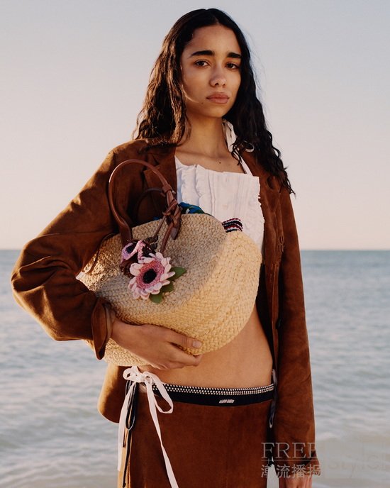 配饰尽显不经意的优雅与柔美,采用中性色调,以深巧克力色、焦糖色到浅棕色的丰富棕色系为主旋律。本季备受瞩目的Vivant手袋是精致且百搭的随行伴侣,与编织皮革和绒面革材质的腰带、凉鞋以及如今已成为Miu Miu衣橱中必备的经典运动鞋相得益彰。俏皮的斜纹棉牛仔帽修饰并裹藏面庞,而质感结实的弧形Ivresse太阳镜则为整体造型画下点睛之笔。