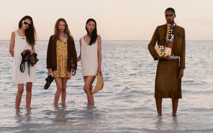 2026 Miu Miu L'Eté系列广告大片由摄影师Jeano Edwards掌镜,品牌大使刘浩存、模特Sateen Besson、Lena Mantler及Lisa Mantler共同演绎,该系列是一次对昼间光影的探索,悠在无垠海景中捕捉悠长慵懒的盛夏氛围,传递温和的乐观主义与对未来的无限期冀。
