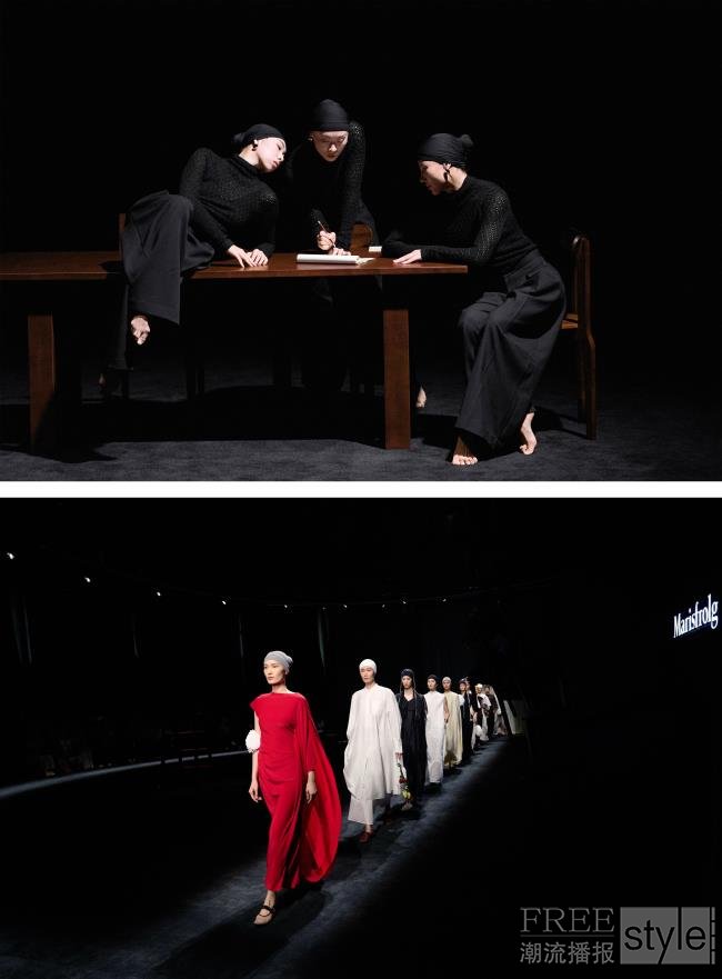 灵感源自德国舞蹈家皮娜·鲍什(Pina Bausch)所提出的“舞蹈剧场”理念。本季发布中,Marisfrolg 与知名舞蹈团D.Lab即兴共创,邀请三位女性舞蹈艺术家以剧场形式展开一场探索内在灵感的演出。
