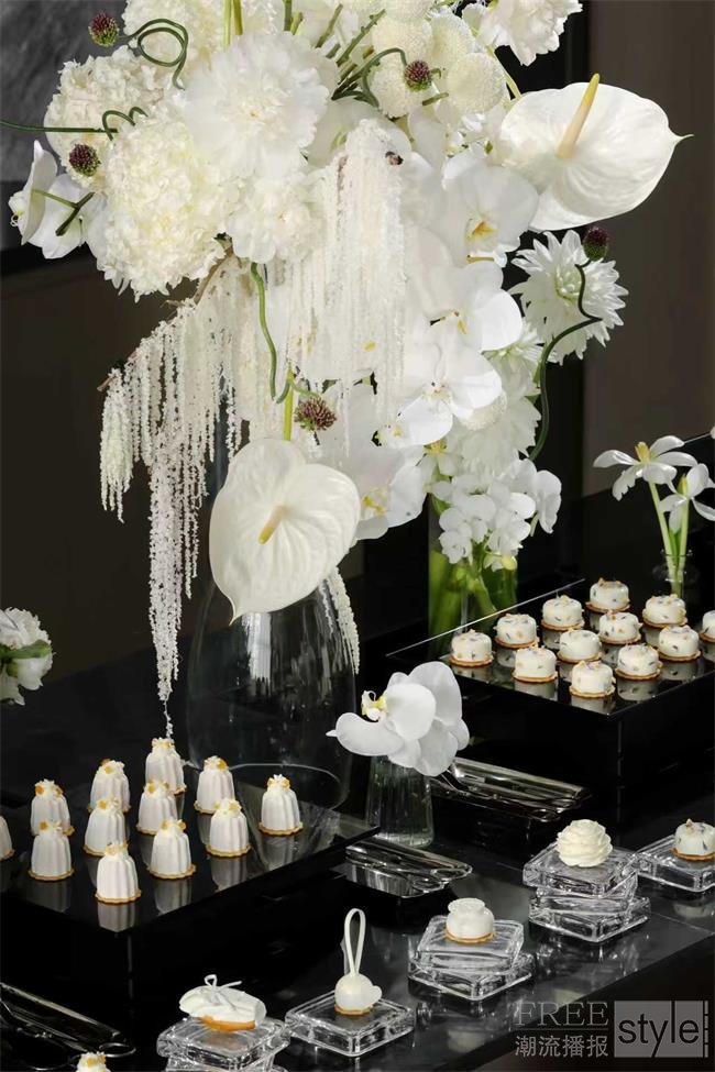 沉浸其间的视觉盛宴之外,味觉款待亦被悉心纳入整场体验之中。深耕甜点艺术美学的饼房厨师长赵文瑄携饼房团队特别呈现定制主题茶歇,以精巧细致的小食映衬主题氛围,每一道点心在造型与风味之间皆见巧思,甜润清雅而余韵丰盈,为现场增添一抹悠长回味。