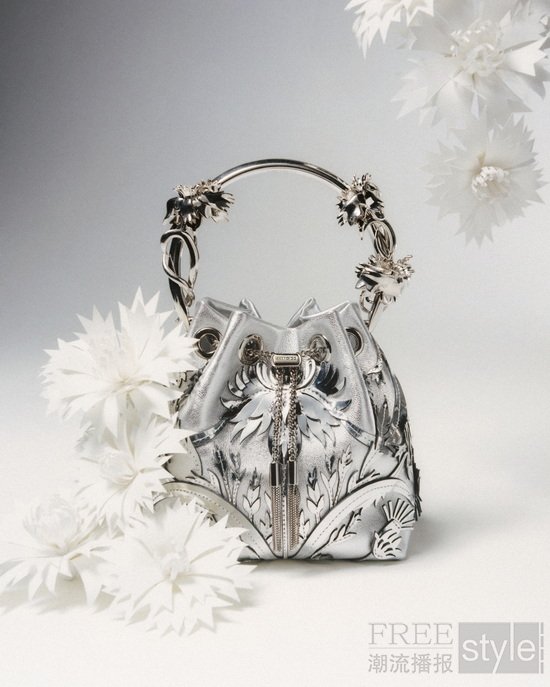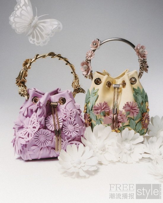 在全部四款设计中,每一个元素均由手工单独塑形,从花朵到蝴蝶等图案均源自 Musselwhite 的艺术作品,并通过定制模具和精细的手工缝制技术呈现。每款设计皆为四季的诗意对话,捕捉自然界微妙变化中蕴含的独特情感。“知春”采用牡丹粉色皮革打造,既致敬了创意总监 Sandra Choi挚爱的花卉,也传递着新芽初绽的蓬勃朝气;“寻夏”以浅淡日光晕染色调,捕捉漫长夏日阳光沐浴下的惬意与从容;“秋叙”凭借层叠细节与大地金属色系,勾勒落叶纷飞的景致;“冬安”则选用银色皮革搭配金属饰件,描摹冬日霜打的花朵与疏林之美。此外,品牌还将通过高级定制服务推出同系列精选鞋款,完整呈现该限定系列。