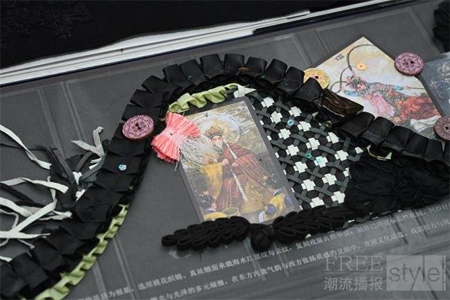 面对非遗传承与可持续发展,设计师展现了深厚的在地情怀与创新智慧,或秉持“慢时尚”理念探索民族工艺的现代转化,或利用废料再造面料诠释东方雅韵,同时将环保理念贯穿其中。他们利用回收废弃锡纸结合非遗工艺制作装饰,传递生态守护的愿景。此外,还有作品将AI数字美学与东方哲学思想结合,以服装为画布捕捉情绪,展现了极具未来感的艺术表达。