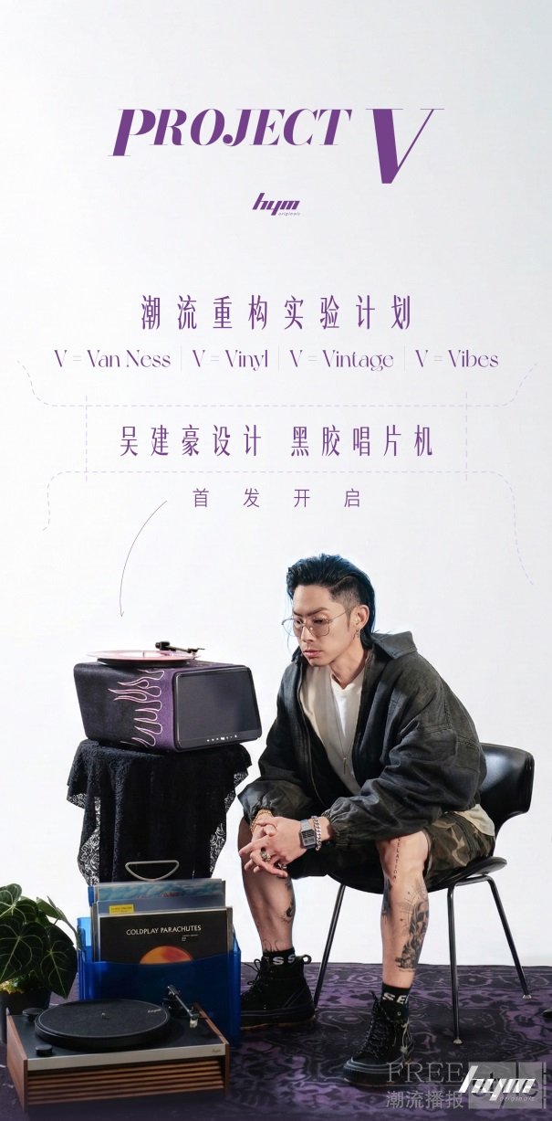 2026年4月8日,一场关于"声音家具"的全新探索正式开启。歌手、演员及潮流主理人吴建豪(Van Ness Wu)携手HYM,经过一年半时间的潜心研发,Project V潮流重构实验计划正式发布。这款由吴建豪主导设计的黑胶唱片机,不仅是一件播放设备,更是一件可以聆听的家居艺术品。