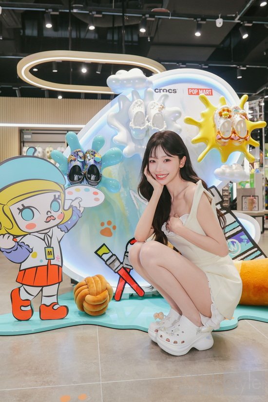 Crocs品牌大使易梦玲亮相活动现场 上脚Baby Molly炫光小鲸鱼洞洞鞋
