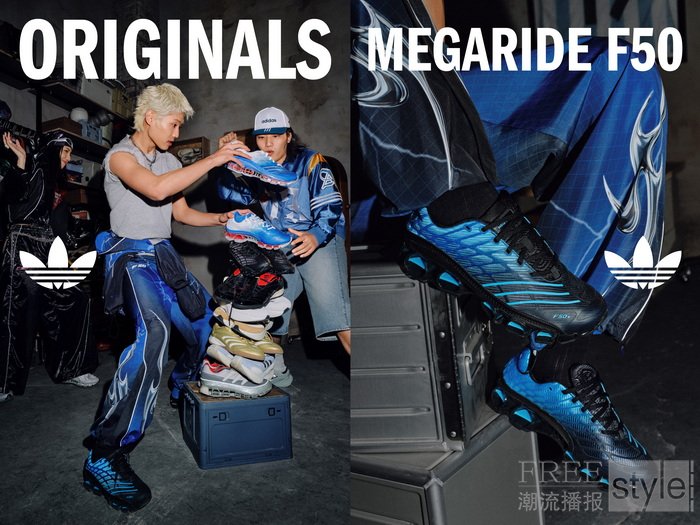 Megaride F50 则以更具未来感的设计语言,回应当代男生对于个性表达的穿搭需求。其设计承接 adidas 千禧年代跑鞋科技美学的演化脉络。自 2002 年 a3 缓震系统以独立发泡模块构建出极具辨识度的机械感视觉以来,adidas 持续推进这一中底语言的迭代,并逐步发展出 Megaride 系列鲜明的科技风格。此次,Megaride F50 在此基础上创新结合足球鞋鞋面轮廓,呈现出兼具复古感、未来感与潮流属性的全新表达。