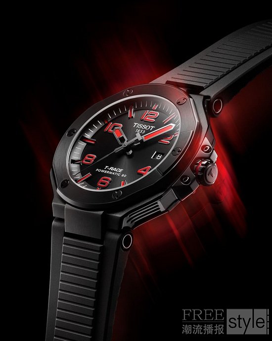 图3:天梭竞速系列“幻影黑”机械腕表,则以纯粹的黑色语言回应赛道本色