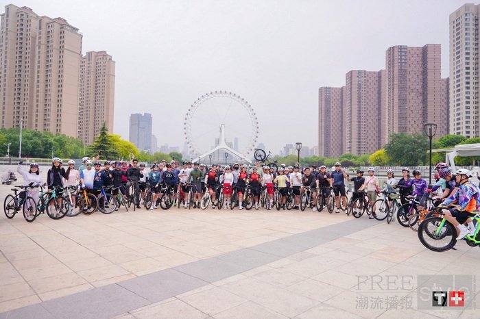 图1:4月26日,2026年度天梭“我们天生一队”城市骑行活动首站于天津启程
