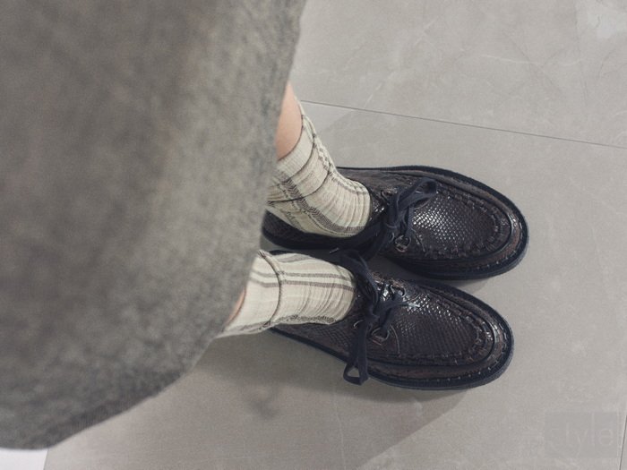 Hatton Derby则采用高光蛇纹压纹鞋面,搭配以 George Cox 标志性D形环固定的鞋带,并延续厚底绉胶鞋底设计。Vivienne Westwood与George Cox 鞋款,均在鞋头饰以手工双排编织细节。本次合作在致敬经典的同时,赋予了其当代语境下的全新表达。