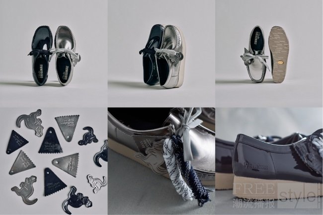 Wallabee 2604特别系列告别了传统麂皮质感,转向高光泽漆皮的未来主义表达。银色与海军蓝两种配色赋予鞋面犹如宇航服外壳的科技光泽,标志性的手工缝制莫卡辛结构仍被完美保留,形成过去与未来的迷人对话。Clarks Originals为其搭载了Vibram®橡胶外底,赋予卓越抓地力与耐久性。随鞋附赠专属袋鼠动物吊牌、纪念吊牌以及三副可替换圆形鞋带(平纹、白色斑点、白色条纹)。鞋跟处压印的Wallabee标志,则是留给玩家的终极认证密码。这无疑是一双真正的收藏级单品,以高规格工艺与材质向经典致敬,并坚定地指向更远的未来。