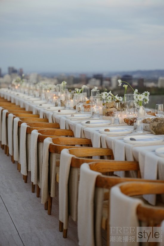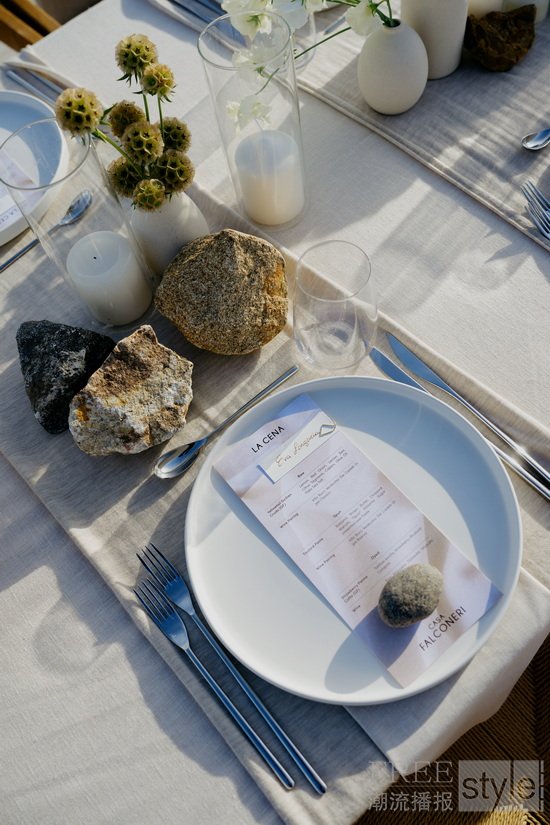整场体验贯穿别墅多个空间,简约克制的建筑格调,精准映照 Falconeri的极简美学,引领嘉宾展开一场多重感官之旅。从眺望洛杉矶山野的露台景致,到静谧舒适的室内空间,晚宴全程层层递进,带领嘉宾了解天然纤维的世界。
