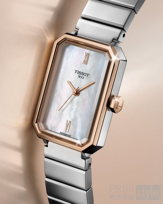 一枚线条利落、配色简洁而考究的腕表,亦能成为出行造型的支点。新款天梭小美人系列芳心款腕表以矩形表壳和刻面蓝宝石玻璃表镜致敬1920年代的经典设计,同时融入当代审美。精钢与玫瑰金双色款在冷暖对比中呈现和谐光影,全金色PVD涂层款则以纯粹的金色释放自信气质,珍珠母贝表盘的温润光泽为两枚腕表增添了丰富的层次感。两种风格源于同一经典,走向不同的表达。假期出行,戴上它,便是对自己审美的一份从容认可。